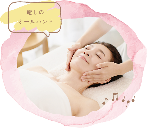 近ごろは機械でエステを行うことも多いですが、その日の体調やコンディションに合わせた繊細なフェイシャルエステを行えるのが、オールハンドの魅力。また、体温に近い手で施術することでぬくもりを感じられ、どこか安心感があり心地よく施術を受けられます。